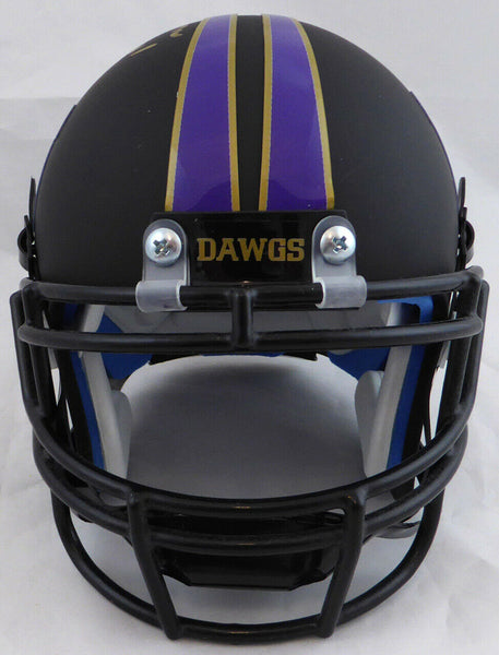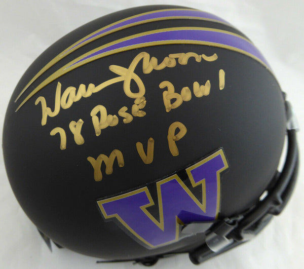This is a Schutt Washington Huskies Matte Black Mini Helmet that has been hand signed by Warren Moon. This item was signed in the presence of a Mill Creek Sports representative and comes with their serial numbered hologram and matching certificate of authenticity.