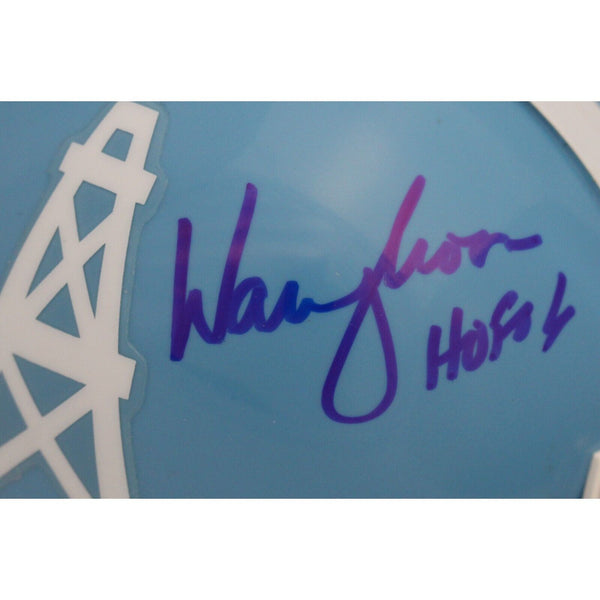 The number in the listing title is just an inventory sku for our records and is not the authentication number. The item pictured is a stock photo unless otherwise noted. This is a Houston Oilers VSR4 Throw Back 1960-1962 Mini Helmet that was personally autographed by Warren Moon with "HOF" inscription. Includes a certificate of authenticity from Beckett Authentication Services (BAS) and Denver Autographs.FREE SHIPPING within the USA on orders over $10!