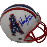 The number in the listing title is just an inventory sku for our records and is not the authentication number. The item pictured is a stock photo unless otherwise noted. This is a Houston Oilers VSR4 Throw Back 1981-1998 Mini Helmet that was personally autographed by Warren Moon with "HOF" inscription. Includes a certificate of authenticity from Beckett Authentication Services (BAS) and Denver Autographs.FREE SHIPPING within the USA on orders over $10!