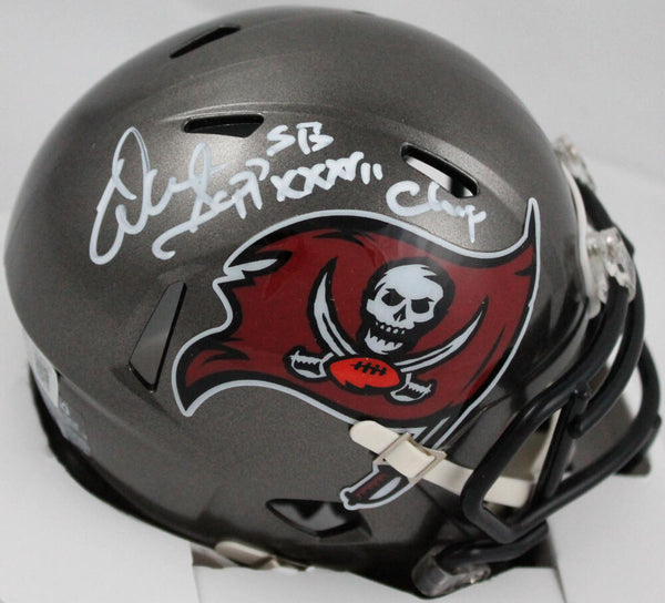 Warren Sapp Autographed Tampa Bay Buccaneers 97-13 Speed Mini Helmet w/SB Champs-Beckett W Hologram *White This is a hand autograph of Warren Sapp of the Tampa Bay Buccaneers on a Riddell Football 97-13 Speed Mini Helmet and inscribed with SB Champs. This item has a Beckett Witnessed Authentication, which comes with a numbered hologram with a QR code for verification. You can view this item on the Beckett Authentication website, it shows when and where the item was signed. It was signed either at a public autograph appearance or a private signing. This is a stock photo of the item. Although you may not receive this exact item, the item you receive is virtually identical, brand new, and in great shape.