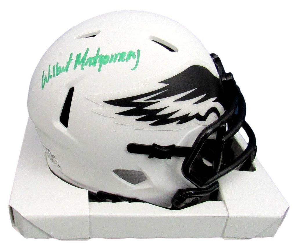 Wilbert Montgomery Signed/Autographed Philadelphia Eagles White Lunar Eclipse Mini Football Helmet. This helmet is authenticated by JSA and includes their Tamper-proof Sticker and Certificate of Authenticity.