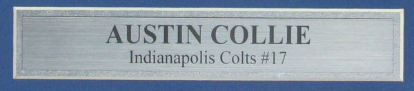 Austin Collie Indianapolis Colts Signed/Autographed 8x10 Photo Framed. The outer frame size is 13 inches x 16 inches. This photo is authenticated by JSA and includes their Tamper-proof Sticker and Certificate of Authenticity.