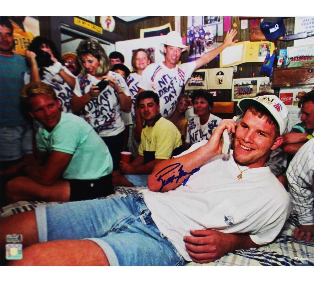 A Green Bay Packers Unframed 16x20 NFL Photo - Draft Day Call hand signed by Brett Favre. The item and signature are in excellent condition. A 20 year veteran of the NFL, Brett is a Super Bowl Champion, 11x Pro Bowler, 3x AP NFL Most Valuable Player, 4x NFL passing touchdowns leader, and 2x passing yards leader. His number, 4, has been retired by both the Green Bay Packers and the Southern Miss Golden Eagles. Brett was inducted into the Pro Football Hall of Fame in 2016. AUTHENTICATION: The item is accompanied by a Brett Favre Exclusive Certificate of Authenticity - Brett Favre Exclusive Serial Numbered and Databased Hologram - Picture of Brett from the signing