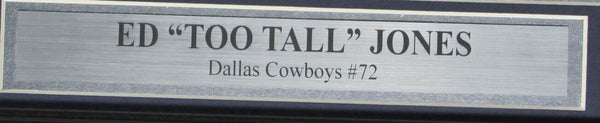 Ed "Too Tall" Jones Dallas Cowboys Signed/Autographed 8x10 Photo Framed. The outer frame size is 16 inches x 13 inches. This photo is authenticated by JSA and includes their Tamper-proof Sticker and Certificate of Authenticity.