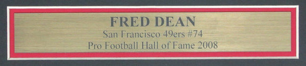 Fred Dean HOF San Francisco 49ers Signed/Autographed 8x10 Photo Framed. The outer frame size is 13 inches x 16 inches. This photo is authenticated by JSA and includes their Tamper-proof Sticker and Certificate of Authenticity.