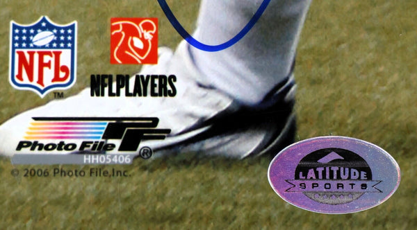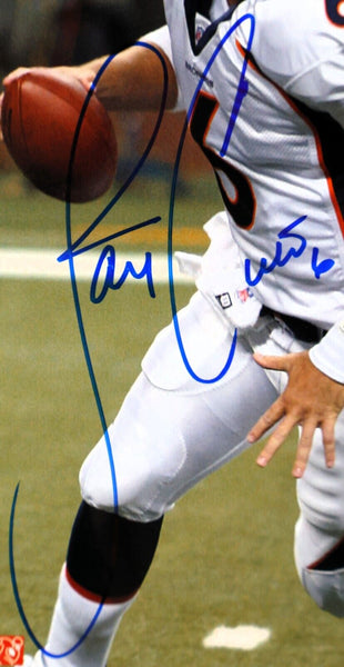 The product is an 8x10 photo autographed by football player Jay Cutler, signed with authentication from Latitude Sports Marketing (LSM). The photo features Cutler in his Denver Broncos uniform, making it a unique and collectible item for fans of the team and football enthusiasts. This original autographed photo adds value to any sports memorabilia collection and showcases Cutler's connection to the Broncos.