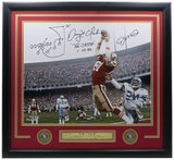 Joe Montana Dwight Clark Signed Framed 16x20 Photo Play Insc. Auto 10 BAS LOA