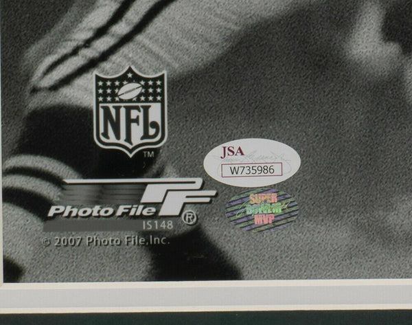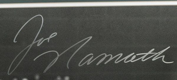 Featured is a Joe Namath signed framed New York Jets 16x20 football photo. This photo was hand signed by Joe Namath in the presence of a JSA authentication representative. Included with the photo is a JSA witnessed hologram. This photo has been professionally framed and matted and measures approximately 22x27.. SPECIFICATIONS Autographed By: Joe Namath Team: New York Jets Sport: Football-NFL Authentication: James Spence Authentication (JSA)