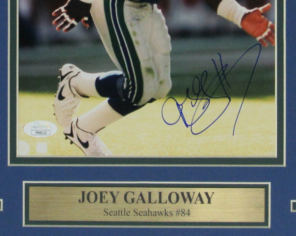 Joey Galloway Seattle Seahawks Signed/Autographed 8x10 Photo Framed. The outer frame size is 13 inches x 16 inches. This photo is authenticated by JSA and includes their Tamper-proof Sticker and Certificate of Authenticity.