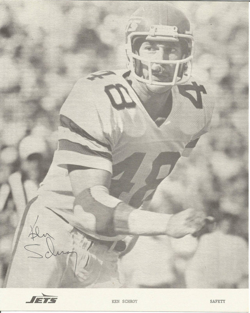 Ken Schroy New York Jets Signed/Autographed 8x10 B/W Photo. The Seller guarantees that this signature will pass all Authentication processes.