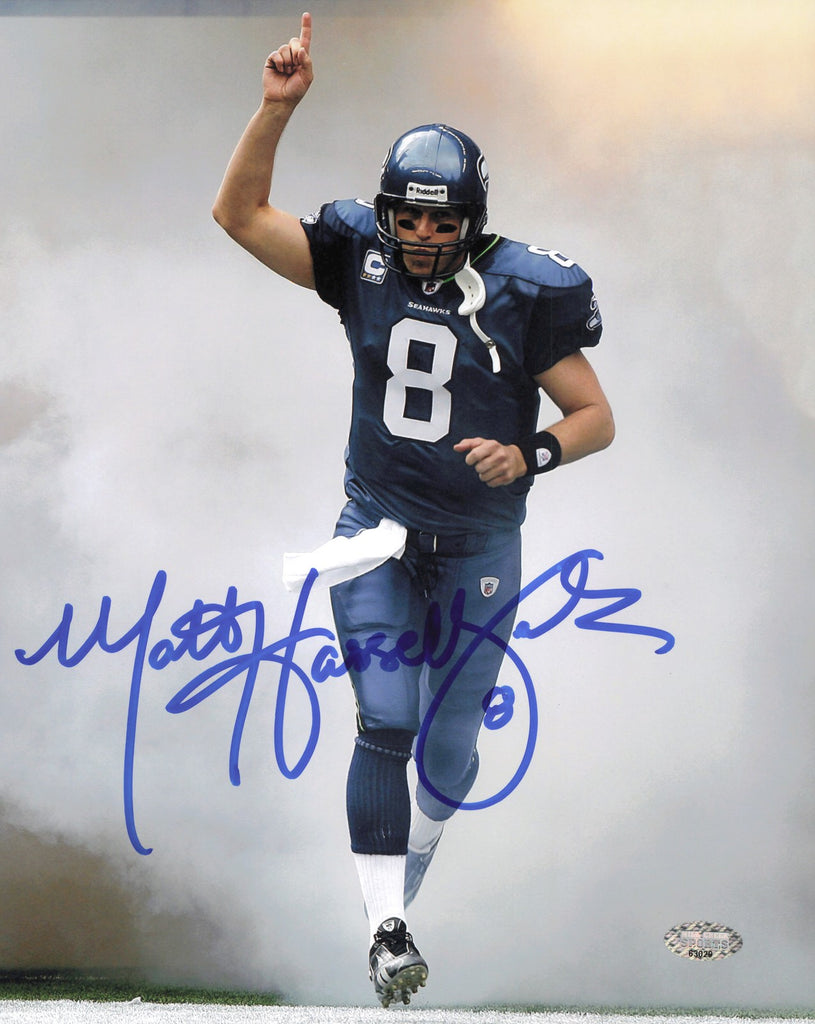 This is an 8x10 Photo that has been hand signed by Matt Hasselbeck. This item was signed in the presence of a Mill Creek Sports representative and comes with their serial numbered hologram and matching certificate of authenticity.