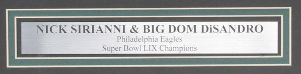 Nick Sirianni/Big Dom DiSandro Dual-Signed/Autographed 16x20 Photo Philadelphia Eagles Framed. The outer frame size is 26 inches x 22 inches. This photo is authenticated by BAS/Beckett Witness and includes their tamper-proof hologram sticker.