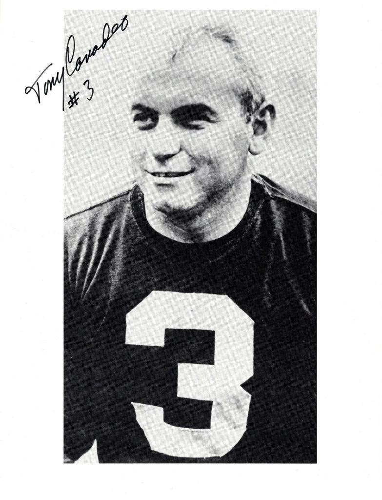 An 8x10 hand signed color photo of Green Bay Packers Hall of Famer TONY CANADEO (deceased). The signature is in Black Sharpie. This would make a great addition to any Packers collection as he is a very hard autograph to obtain. This photo was signed at a private signing. This item is guaranteed to be 100% authentic and will include a COA from Waukesha Sportscards with matching serial numbered holograms.