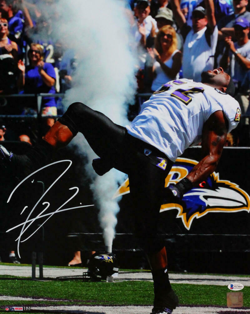 Ray Lewis Autographed Baltimore Ravens 16x20 HM Tunnel Dance Photo - Beckett W Auth *White This is a hand autographed 16x20 Highland Mint Photo of Ray Lewis of the Baltimore Ravens. This item has a Beckett Witnessed Authentication, which comes with a numbered and a matching Beckett Certificate of Authenticity. You can view this item on the Beckett Authentication website and it shows when and where the item was signed. It was signed either at a public autograph appearance or a private signing. This is a stock photo of the item. Although you may not receive this exact item, the item you receive is virtually identical and brand new in great shape.