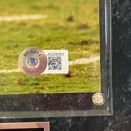 The product is an autographed 8x10 photo of Shannon Sharpe from the Denver Broncos, authenticated by Beckett Authentication Services (BAS). This original autographed photo comes with a plaque and a Certificate of Authenticity (COA) for verification. It is a unique and collectible item for fans of NFL football, especially those who admire the career of Shannon Sharpe during his time with the Denver Broncos. The photo captures a special moment in sports history, making it a valuable addition to any sports memorabilia collection.