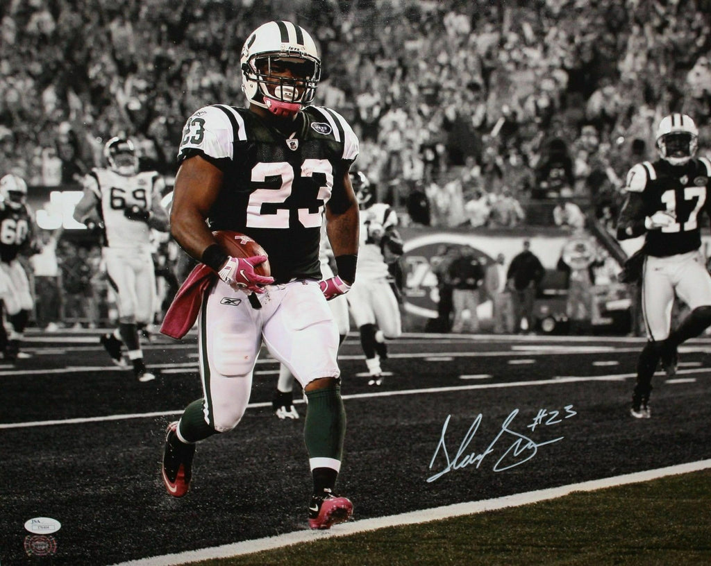 This is a hand autographed 16x20 Photo of Shonn Green of The New York Jets. This item has a James Spence Authentication, which comes with a JSA numbered sticker and a matching JSA COA. You can view this item on the SpenceLOA website and it shows when and where the item was signed. It was signed either at a public autograph appearance or a Private Signing. This is a stock photo of the item. Although you may not receive this exact item, the item you receive is virtually identical and brand new in great shape. This is a hand autographed 16x20 Photo of Shonn Green of The New York Jets. This item has a James Spence Authentication, which comes with a JSA numbered sticker and a matching JSA COA. You can view this item on the SpenceLOA website and it shows when and where the item was signed. It was signed either at a public autograph appearance or a Private Signing. This is a stock photo of the item. Although you may not receive this exact item, the item you receive is virtually identical and brand new in great shape.