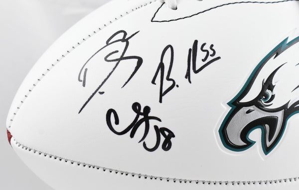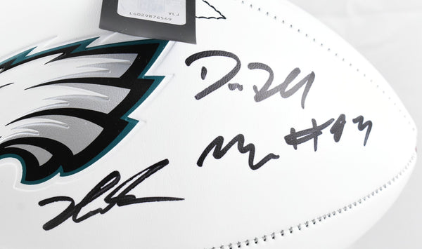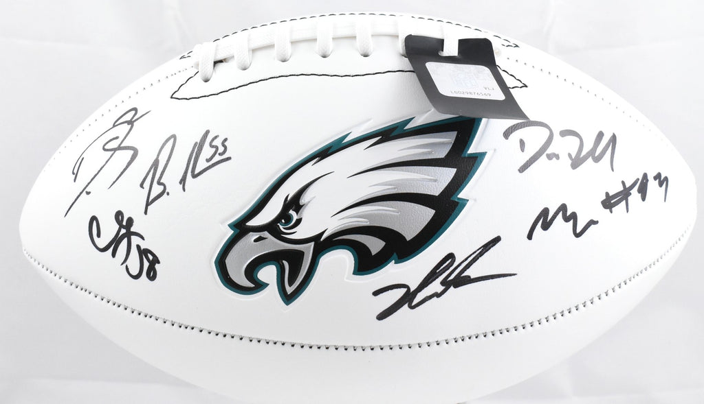 This is a hand autographed Football of Jalen Carter, Darius Slay, C.J. Gardner Johnson, Big Dom, Milton Williams, and Brandon Graham of the Philadelphia Eagles. This is a Philadelphia Eagles Franklin Logo Football. This item has a Beckett Witnessed Authentication, which comes with a numbered hologram and a QR code for verification. You can view this item on the Beckett website, it shows when and where the item was signed. It was signed either at a public autograph appearance or a private signing. This is a stock photo of the item. Although you may not receive this exact item, the item you receive is virtually identical and brand new in great shape. This is a hand autographed Football of Jalen Carter, Darius Slay, C.J. Gardner Johnson, Big Dom, Milton Williams, and Brandon Graham of the Philadelphia Eagles. This is a Philadelphia Eagles Franklin Logo Football. This item has a Beckett Witnessed Authentication, which comes with a numbered hologram and a QR code for verification. You can view this item on the Beckett website, it shows when and where the item was signed. It was signed either at a public autograph appearance or a private signing. This is a stock photo of the item. Although you may not receive this exact item, the item you receive is virtually identical and brand new in great shape.