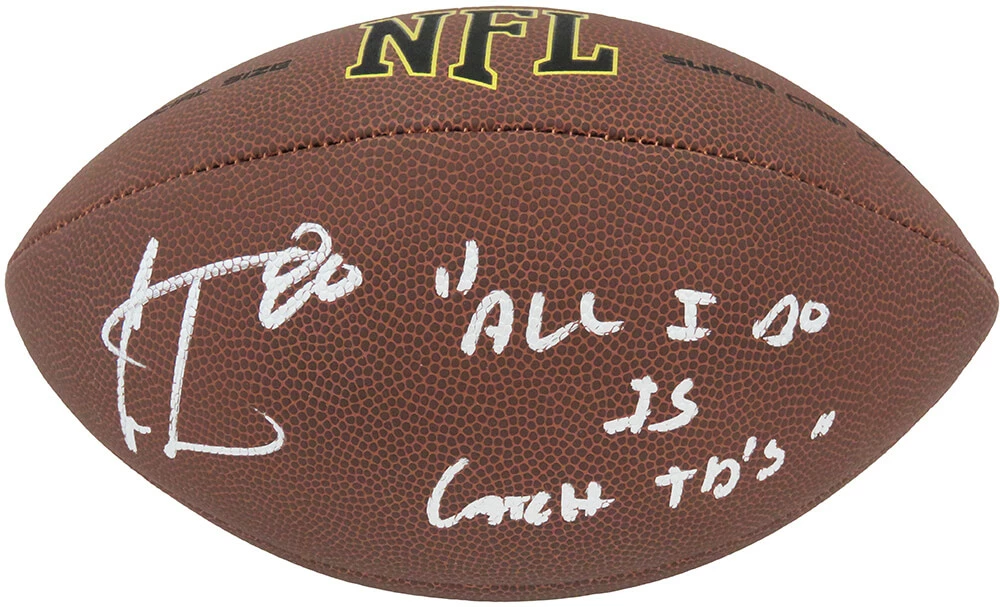 Cris Carter signed Wilson Limited full size NFL football with 'All I Do Is Catch TD's' inscription. Item comes with a Schwartz Sports Memorabilia tamper-proof numbered hologram and Certificate of Authenticity which can be verified online.