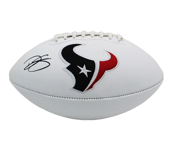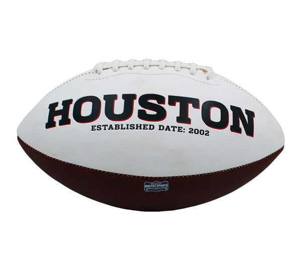 A Houston Texans Embroidered White NFL Football hand signed by Dalton Schultz. The item and signature are in excellent condition. Dalton played college football at Stanford University. He was selected in the 2018 NFL Draft by the Dallas Cowboys. Where he played for 4 season. He is now with the Houston Texans. AUTHENTICATION: Your item has been tagged with a Dalton Schultz Exclusive SmarTag powered by Prova Technology, which gives you digital access to your items authentication records, including a proof picture from the signing.