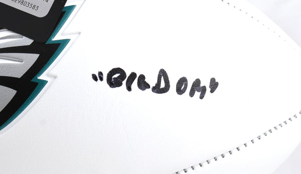 This is a hand autographed Football of Dom DiSandro of the Philadelphia Eagles. This is a Philadelphia Eagles Franklin Logo Football. Inscribed Big Dom. This item has a Beckett Witnessed Authentication, which comes with a numbered hologram and a QR code for verification. You can view this item on the Beckett website, it shows when and where the item was signed. It was signed either at a public autograph appearance or a private signing. This is a stock photo of the item. Although you may not receive this exact item, the item you receive is virtually identical and brand new in great shape. This is a hand autographed Football of Dom DiSandro of the Philadelphia Eagles. This is a Philadelphia Eagles Franklin Logo Football. Inscribed Big Dom. This item has a Beckett Witnessed Authentication, which comes with a numbered hologram and a QR code for verification. You can view this item on the Beckett website, it shows when and where the item was signed. It was signed either at a public autograph appearance or a private signing. This is a stock photo of the item. Although you may not receive this exact item, the item you receive is virtually identical and brand new in great shape.