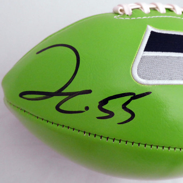 This is a Green Logo Football that has been hand signed by Frank Clark. This item was signed in the presence of a Mill Creek Sports representative and comes with their serial numbered hologram and matching certificate of authenticity.