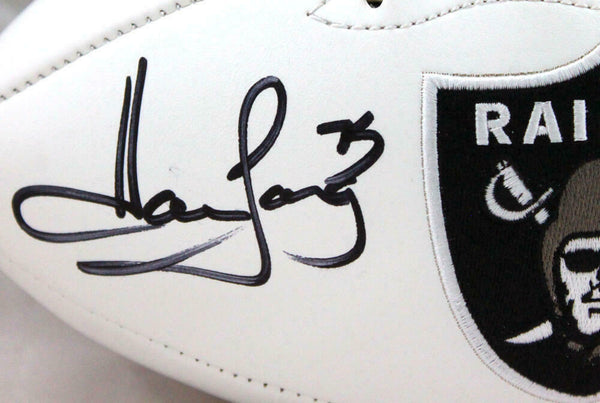 Howie Long Autographed Oakland Raiders Logo Football-Beckett W Hologram *Black This is a Howie Long of the Oakland Raiders hand autographed Logo Football. This item has a Beckett Authentication, which comes with a numbered hologram and a QR code for verification. You can view this item on the Beckett Authentication website. It was signed either at a public autograph appearance or a private signing. This is a stock photo of the item. Although you may not receive this exact item, the item you receive is virtually identical, brand new, and in great shape.