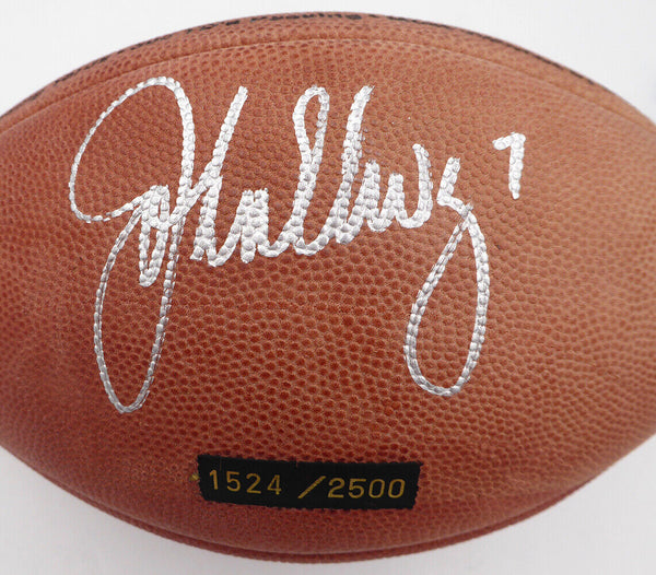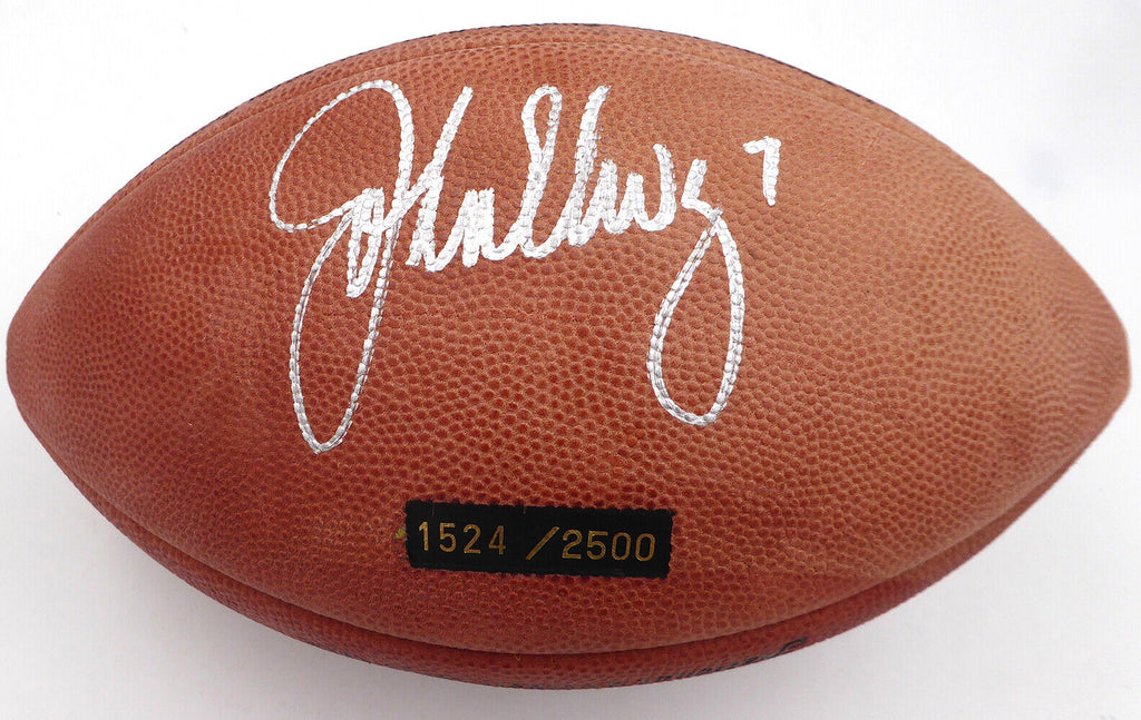 This is a Wilson NFL Game Limited Edition Football that has been hand signed by John Elway. NOTE: The football is a little flat and doesn't hold air. It still displays nice, as shown in the pictures. This item has been certified authentic by Beckett Authentication (BAS) and comes with their tamper-proof QR Code sticker that can be verified on the Beckett-authentication.com.