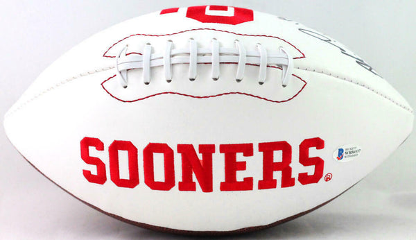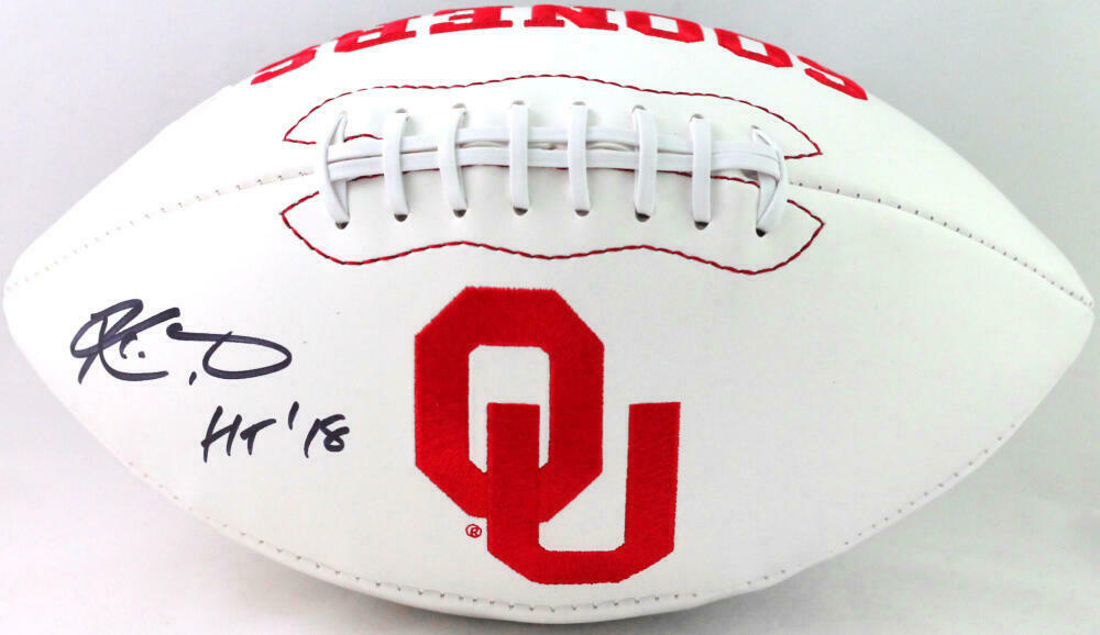 Kyler Murray Signed Oklahoma Sooners Logo Football w/ HT- Beckett W *Black This is a Kyler Murray of the Arizona Cardinals hand autographed logo football inscribed with "HT '18". This item has a Beckett Witnessed Authentication, which comes with a Beckett numbered and matching Beckett Certificate of Authenticity. You can view this item on the Beckett Authentication website, it shows when and where the item was signed. It was signed either at a public autograph appearance or a private signing. This is a stock photo of the item. Although you may not receive this exact item, the item you receive is virtually identical, brand new, and in great shape.