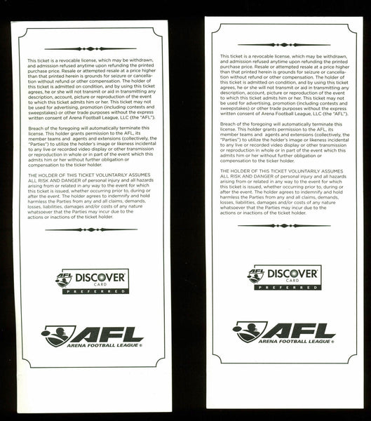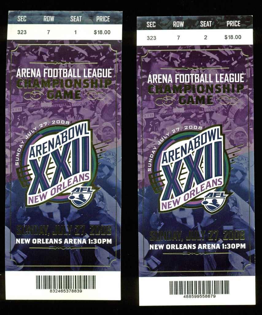 This is a Pair (2) of Arena Football League 2008 Arena Bowl XXII Tickets Un-signedWe only offers Authentic Autographs by Pair (2) through Signings, In-Person Signings or Private Collections to include a 100% money back Lifetime Authenticity Guarantee.