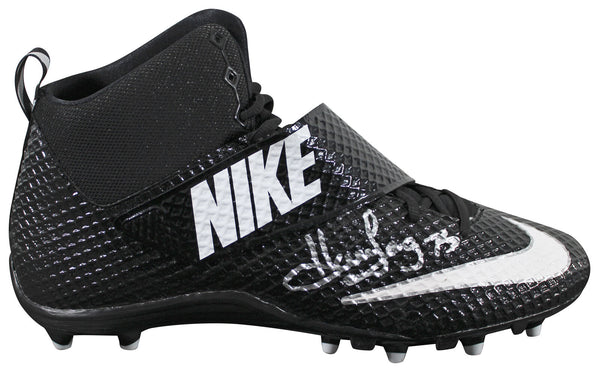 This Autographed Black Nike Strike Pro Football Right Cleat has been Personally Signed by Howie Long of the Oakland Raiders. This item is 100% Authentic to include a hologram by Beckett Authentication Services. This item will come with an affixed Beckett Authentication Services (BAS) authentication sticker, which includes a scannable QR code to verify authenticity. Please note that Beckett no longer provides serial-numbered COA cards, and the attached BAS sticker will serve as the complete authentication for this item. This is a BAS Witnessed Protection Program item which means a Beckett Authentication Service representative was present when this item was being signed. We conducted an autograph signing with Howie Long where multiples of the same item were signed. While the photographs are representative of this item, the size, placement and strength of the signature may vary. Each item is hand signed, therefore, each autograph is unique. This item can be verified through BAS Witnessed. There are multiple sizes available, you are not guaranteed a certain size.