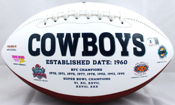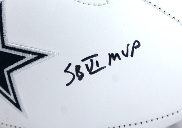 Roger Staubach Autographed Dallas Cowboys Logo Football w/SB MVP-Beckett W Hologram *Black This is a Roger Staubach of the Dallas Cowboys hand autographed logo football. Inscribed SB MVP. This item has a Beckett Witnessed Authentication, which comes with a numbered hologram and a QR code for verification. You can view this item on the Beckett website. It was signed either at a public autograph appearance or a private signing. This is a stock photo of the item. Although you may not receive this exact item, the item you receive is virtually identical, brand new, and in great shape.