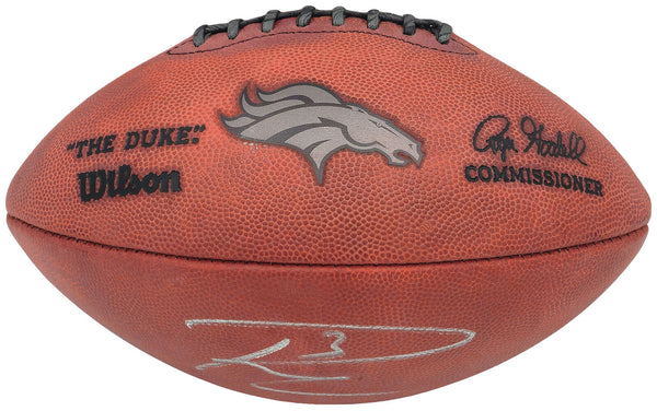 This is an Official NFL Leather Denver Broncos Logo Football that has been hand signed by Russell Wilson. This item has been certified authentic by Fanatics and comes with their tamper-proof sticker.