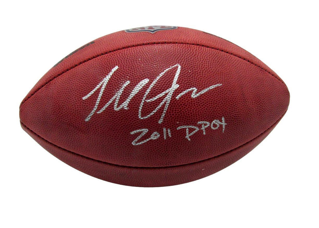 Terrell Suggs Autographed/Inscribed "2011 DPOY" Wilson NFL "The Duke" Football Baltimore Ravens. This football is authenticated by BAS/Beckett and includes their Tamper-proof Hologram Sticker.
