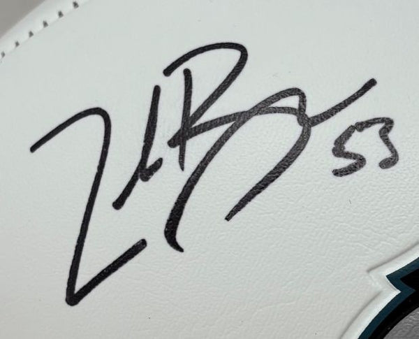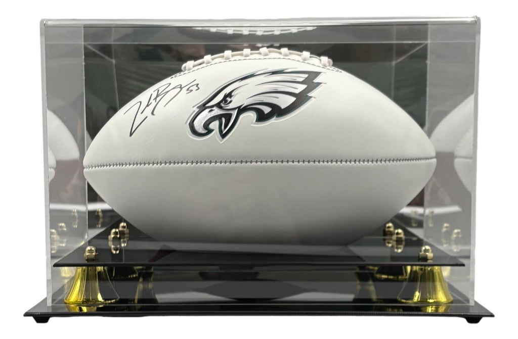 Featured is a Zack Baun signed Philadelphia Eagles logo football. This ball has been hand signed by Baun and comes with the Beckett hologram and certificate of authenticity. Included with this ball is a deluxe acrylic display case. This ball would make a great addition to any sports memorabilia collection! SPECIFICATIONS Autographed By: Zack Baun Team: Philadelphia Eagles Sport: Football Authentication: Beckett