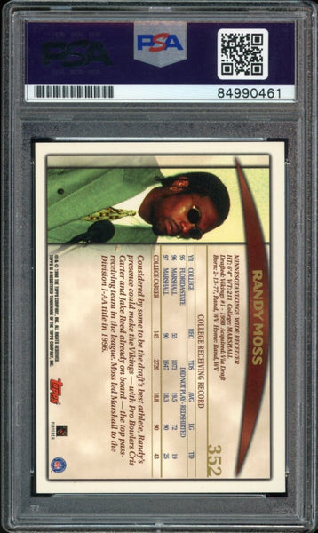 1998 Topps #352 Randy Moss RC Rookie Vikings On Card PSA Auto GEM MINT 10