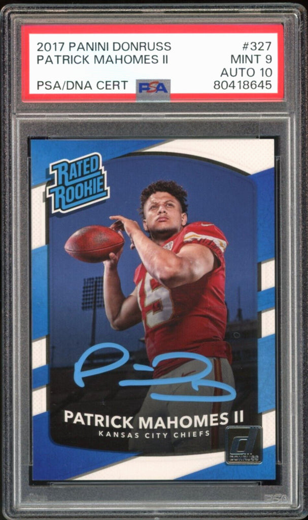 2017 Panini Donruss Rated Rookie Patrick Mahomes RC Blue Ink PSA 9/10 Auto