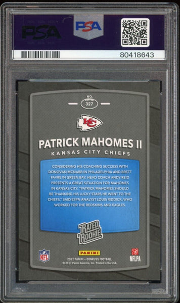 2017 Panini Donruss Rated Rookie Patrick Mahomes RC Yellow Ink PSA 9/10 Auto