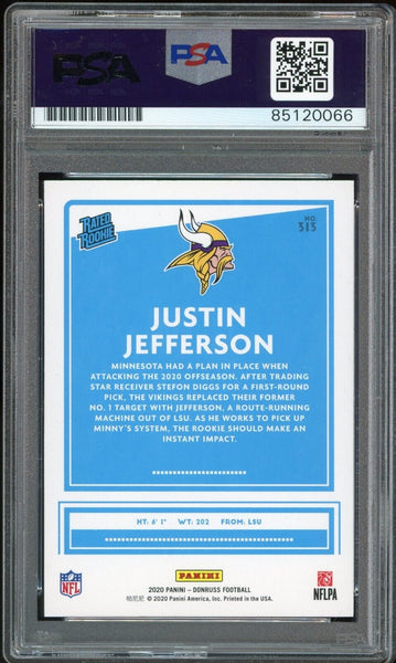2020 Donruss Rated Rookie Justin Jefferson On Card PSA/DNA Auto GEM MINT 10