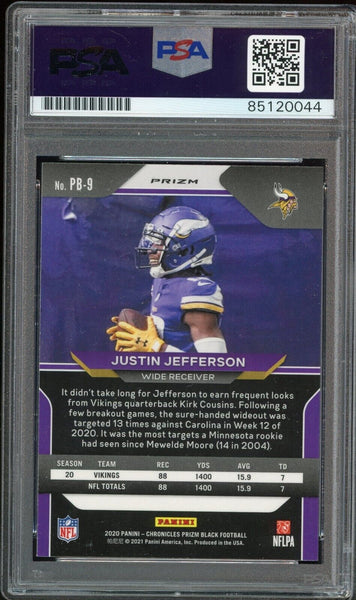 2020 Prizm Black Silver Justin Jefferson RC On Card PSA/DNA Auto GEM MINT 10