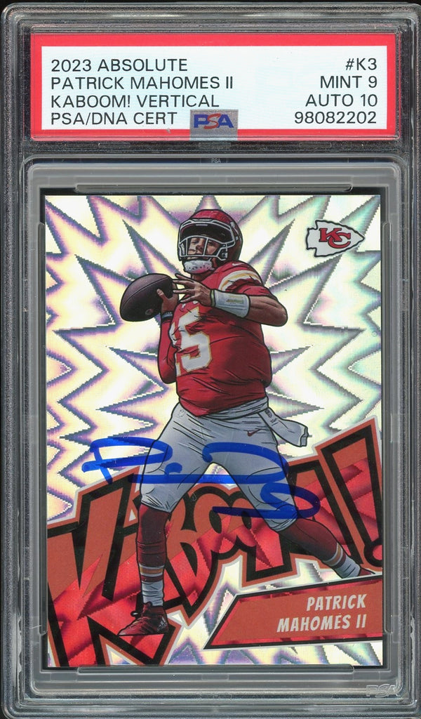 2023 Panini Absolute KABOOM! #K3 Patrick Mahomes On Card PSA 9/10 Auto MINT