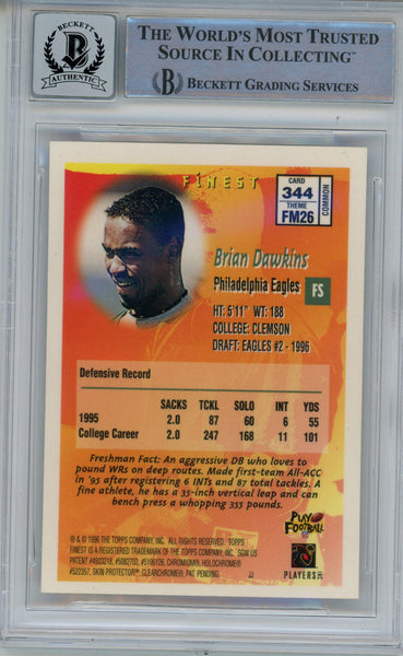 Brian Dawkins Signed 1996 Topps Finest #344 Rookie Card Beckett Slab 42928