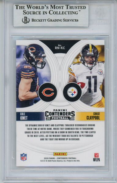 Chase Claypool & Cole Kmet Signed 2020 Panini Contenders Optic Card BAS 32563 The number in the listing title is just an inventory sku for our records and is not the authentication number. The item pictured is a stock photo unless otherwise noted. This is a 2020 Panini Contenders Optic Round Numbers #16 rookie trading card that was personally autographed by Chase Claypool and Cole Kmet. This has been professionally slabbed by Beckett Authentication Services (BAS) and includes a certificate of authenticity from Denver Autographs.