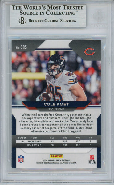 Cole Kmet Autographed 2020 Panini Prizm #305 Rookie Card BAS Slab 33062 The number in the listing title is just an inventory sku for our records and is not the authentication number. This is a 2020 Panini Prizm #305 rookie trading card that was personally autographed by Cole Kmet. This has been professionally slabbed by Beckett Authentication Services (BAS) and includes a certificate of authenticity from Denver Autographs.