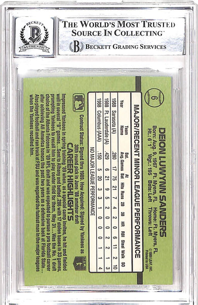Deion Sanders Signed 1989 Donruss #6 Card 10 Auto Beckett 42654 The number in the listing title is just an inventory sku for our records and is not the authentication number. The item pictured is a stock photo unless otherwise noted. This is a slabbed 1989 Donruss #6 Trading Card with a Grade 10 Autograph that was personally autographed by Deion Sanders. Includes a certificate of authenticity from Beckett Authentication Services (BAS) and Denver Autographs.