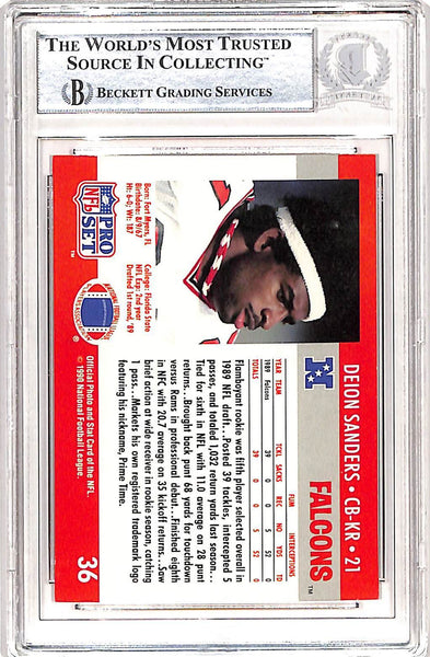 Deion Sanders Signed 1990 Pro Set #36 Trading Card Beckett 42660 The number in the listing title is just an inventory sku for our records and is not the authentication number. The item pictured is a stock photo unless otherwise noted. This is a slabbed 1990 Pro Set #36 Trading Card that was personally autographed by Deion Sanders. Includes a certificate of authenticity from Beckett Authentication Services (BAS) and Denver Autographs.