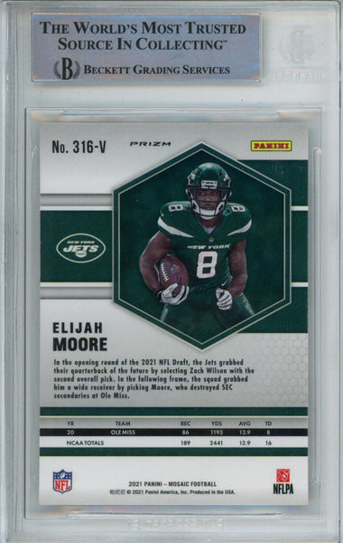 Elijah Moore Signed 2021 Mosaic Rookie Variations #316-V Card BAS Slab 38663 The number in the listing title is just an inventory sku for our records and is not the authentication number. The item pictured is a stock photo unless otherwise noted. This is a trading card that was personally autographed by Elijah Moore. This has been professionally slabbed by Beckett Authentication Services (BAS) and includes a certificate of authenticity from Denver Autographs.