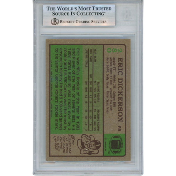 The number in the listing title is just an inventory sku for our records and is not the authentication number. The item pictured is the exact item you will receive, please see photos for condition. This is a Los Angeles Rams 1984 Topps #280 Slabbed Trading Card that was personally autographed by Eric Dickerson. Includes a certificate of authenticity / hologram from Beckett Authentication Services (BAS) and Denver Autographs. FREE SHIPPING within the USA on orders over $10!