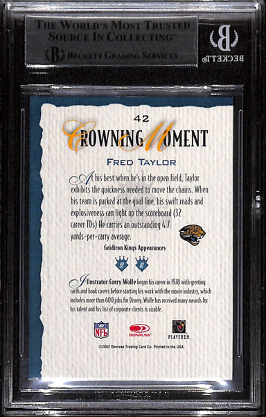 Fred Taylor Signed 2002 Gridiron Kings Bronze #42 Trading Card Beckett 43878 The number in the listing title is just an inventory sku for our records and is not the authentication number. The item pictured is a stock photo unless otherwise noted. This is a Jacksonville Jaguars 2002 Gridiron Kings Bronze #42 Slabbed Trading Card that was personally autographed by Fred Taylor. Includes a certificate of authenticity from Beckett Authentication Services (BAS) and Denver Autographs.