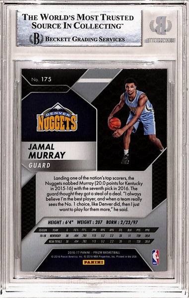 Jamal Murray Signed 2016 Prizm #175 Trading Card Slab Beckett 39638 The number in the listing title is just an inventory sku for our records and is not the authentication number. The item pictured is a stock photo unless otherwise noted. This is a Denver Nuggets 2016 Prizm #175 Slabbed Trading Card that was personally autographed by Jamal Murray. Includes a certificate of authenticity from Beckett Authentication Services (BAS) and Denver Autographs.
