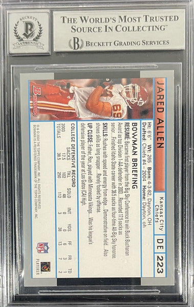 Jared Allen Signed 2004 Bowman #223 grade 10 auto KC Chiefs Beckett 36275